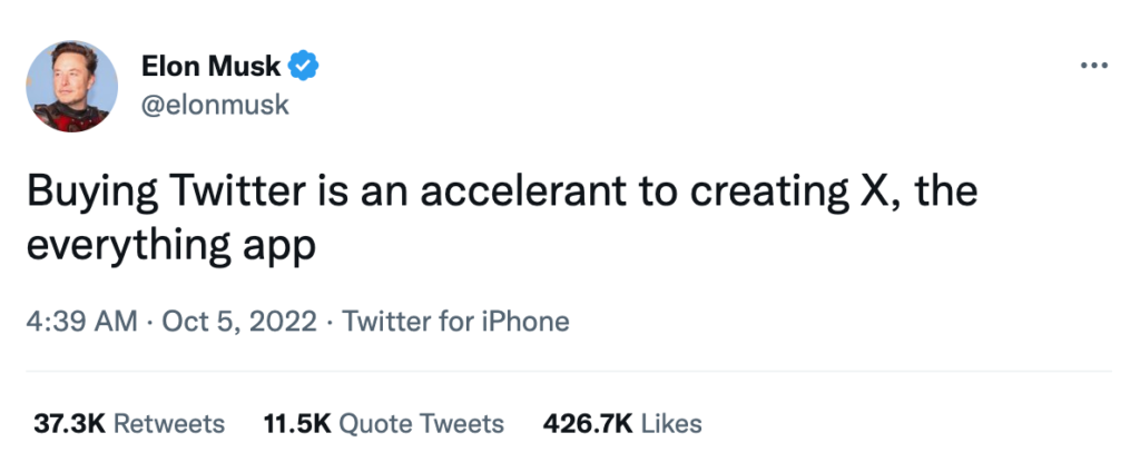 In a surprise move, on October 4, Musk announced that he would buy Twitter on the terms agreed upon in April. He argued that this purchase would become the base of his everything-app vision.