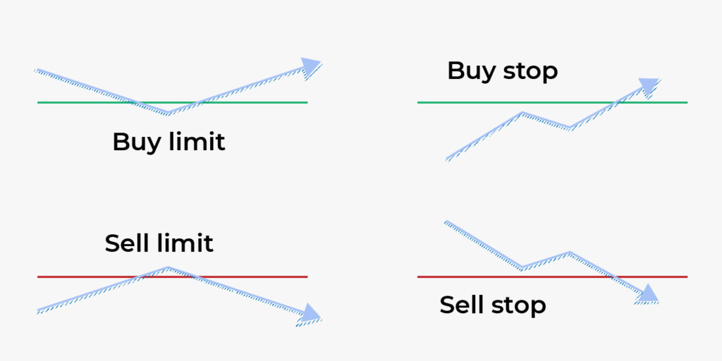 पेंडिंग ऑर्डर्स आपको बिना जल्दबाजी के बाजार की स्थितियों का मूल्यांकन करने की अनुमति देते हैं। चार प्रकार के पेंडिंग ऑर्डर्स होते हैं: