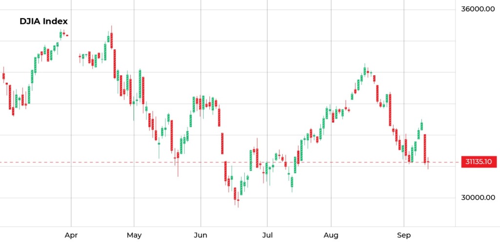 Indeks ini mengukur nilai 30 saham blue-chip terbesar di Amerika Serikat.