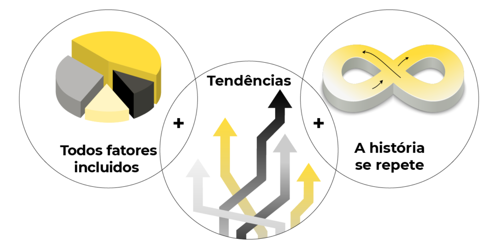- Cada fator com poder de afetar o preço do ativo já está incluído no gráfico. Ou seja, mesmo que o usuário não saiba absolutamente nada sobre a condição econômica de uma empresa e seu desempenho financeiro, é possível prever a movimentação dos preços com precisão.