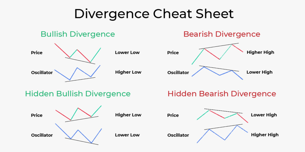 - Divergence. Divergence is a condition when a price and an indicator move in different directions. Below, you can find key divergence rules.