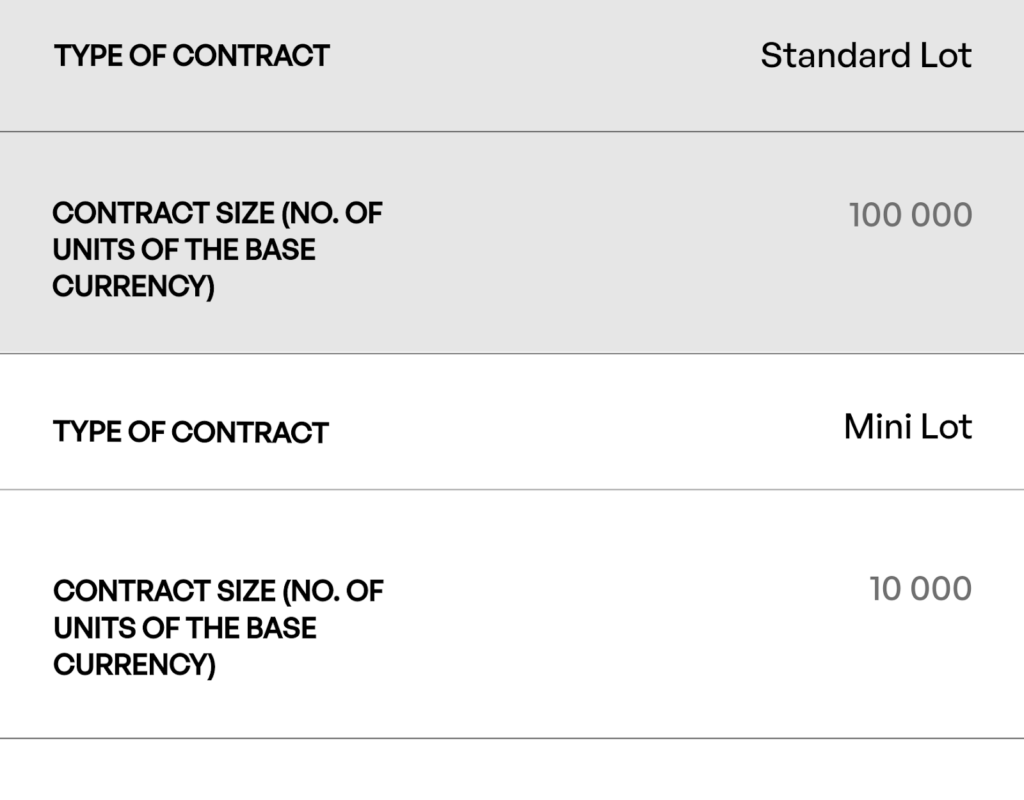 Her para biriminin bir değeri olduğundan, her döviz paritesi için pip değerinin belirlenmesi gerekir. Ayrıca, komisyoncular bu konuda mini ve standart sözleşmeler sunar. Teknik özellikleri aşağıdaki tabloda görebilirsiniz.