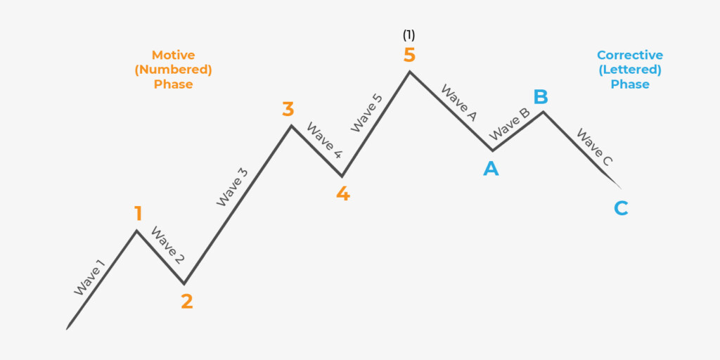 Elliott Wave prensibine göre, bir fiyat hareketi döngüsü, beş dalgalı ilerleme ve üç dalgalı geri çekilmeden oluşur.